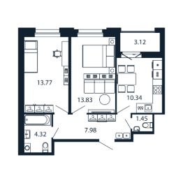 Прямая продажа от застройщика! Готовая Двухкомнатная квартира 51.4 кв.м с кухней 10.34 кв.м с предчистовой отделкой на 9 этаже  в сданном ЖК "Полис Новоселье".