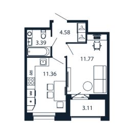Прямая продажа от застройщика! Готовая Однокомнатная квартира 30.7 кв.м с кухней 11.36 кв.м с предчистовой отделкой на 10 этаже в сданном ЖК "Полис Новоселье".
