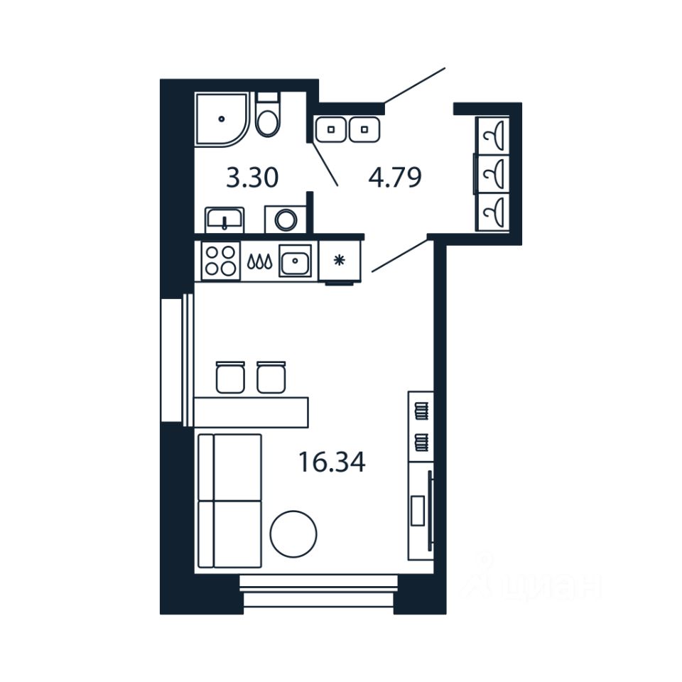 Прямая продажа от застройщика! Готовая Студия 24.1 кв.м с чистовой отделкой на 1 этаже в сданном ЖК "Полис Новоселье".