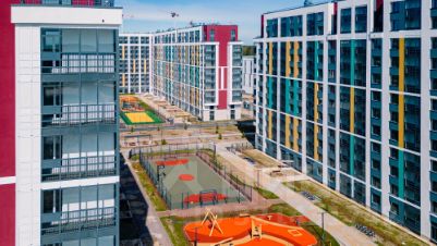 Уже построены два корпуса проекта, каждый двор автономен, сюда родители без боязни выпускают детей на прогулку. Этот проект идеален для старта молодой семьи.