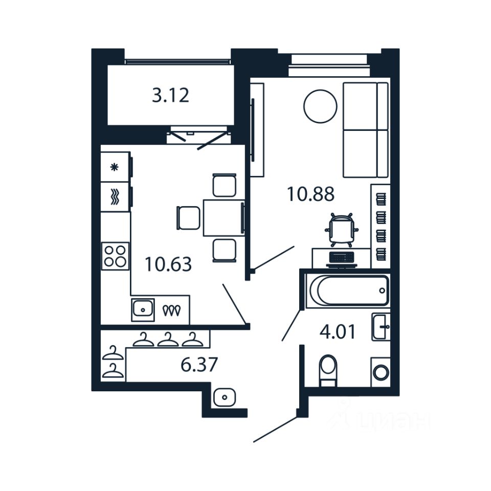 Прямая продажа от застройщика! Готовая Евро-двушка 31.5 кв.м с кухней 10.63 кв.м с чистовой отделкой на 10 этаже в сданном ЖК "Полис Новоселье".