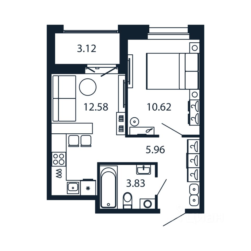 Прямая продажа от застройщика! Готовая Евро-двушка 32.7 кв.м с кухней 12.56 кв.м с предчистовой отделкой на 8 этаже в сданном ЖК "Полис Новоселье".