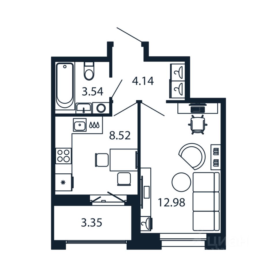 Прямая продажа от застройщика! Готовая Однокомнатная квартира 29 кв.м с кухней 8.52 кв.м с предчистовой отделкой на 9 этаже в сданном ЖК "Полис Новоселье".