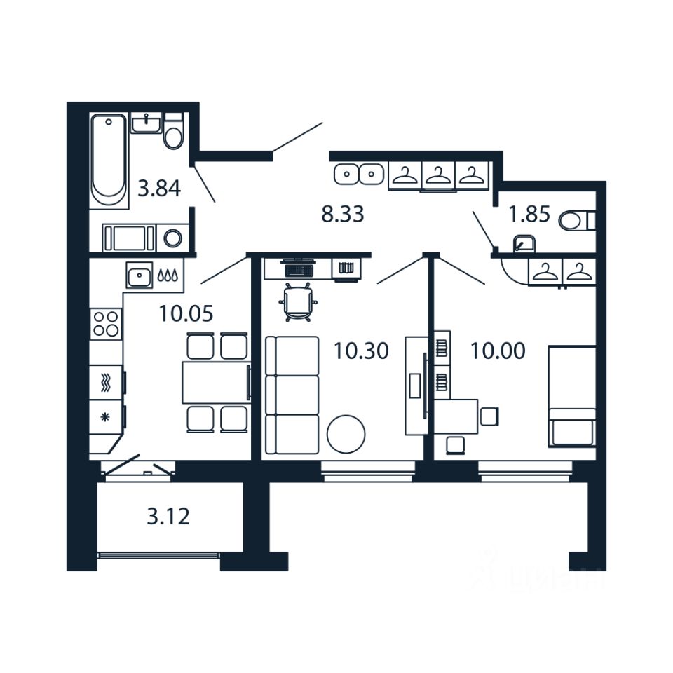 Прямая продажа от застройщика! Готовая Двухкомнатная квартира 44 кв.м с кухней 10.05 кв.м с предчистовой отделкой на 11 этаже в сданном ЖК "Полис Новоселье".