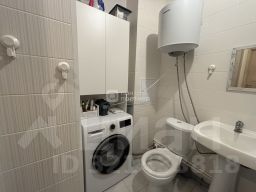 Далее сан узел совмещенный, вместительный, ванная, унитаз, бойлер на случай отключения воды, место для стир машинки.