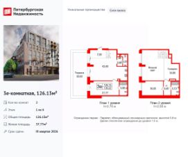 Уникальная, функциональная европланировка, большая кухня-гостиная 43.48 м², просторная прихожая 7.09 м². Общая площадь апартаментов - 126.13 м², жилая 37.77 м².