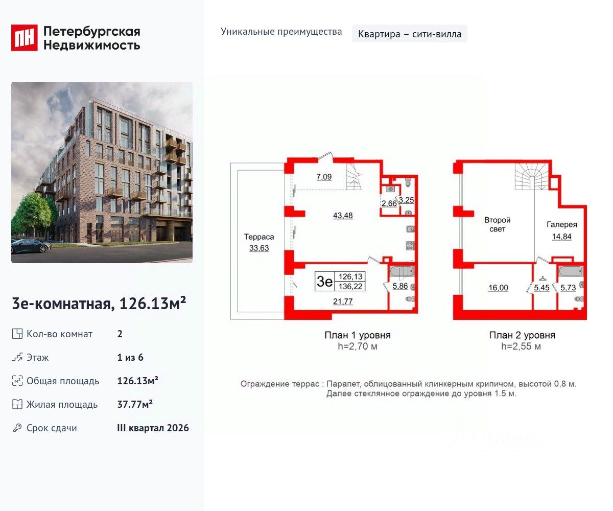 Уникальная, функциональная европланировка, большая кухня-гостиная 43.48 м², вместительная прихожая 7.09 м². Общая площадь апартаментов - 126.13 м², жилая 37.77 м².