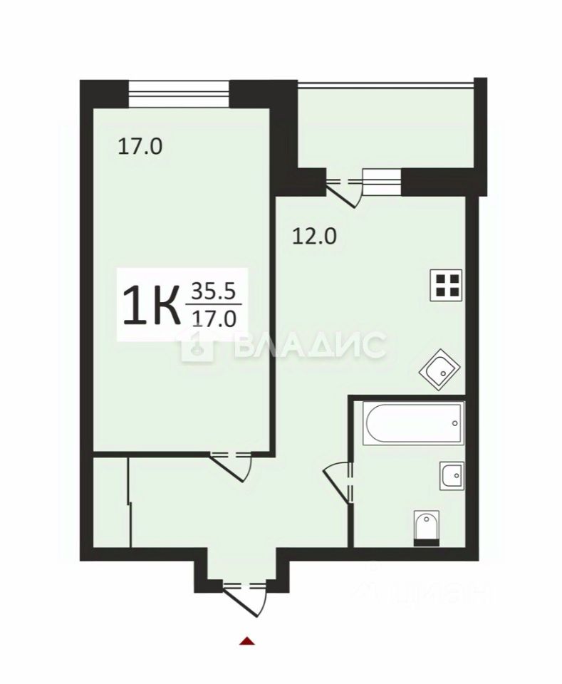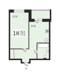Просторная жилая площадь — 17 кв. м, кухня — 12 кв. м.