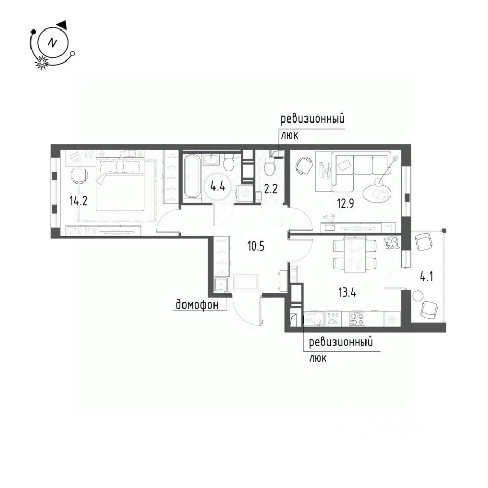 Квартира без отделки, что дает возможность реализовать свои дизайнерские фантазии и создать интерьер на свой вкус.