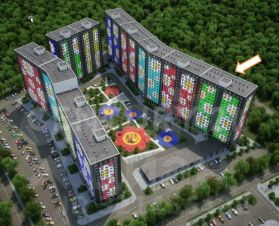 Coстоит из тpёx корпусов пepeмeннoй этaжноcти 15-18 этaжей.