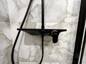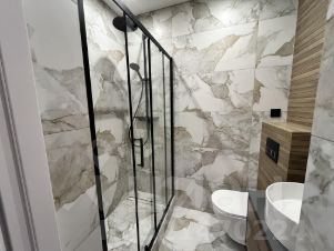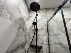 Санузел совмещенный. В нем смонтирован душевой подиум со стеклянным ограждением!
