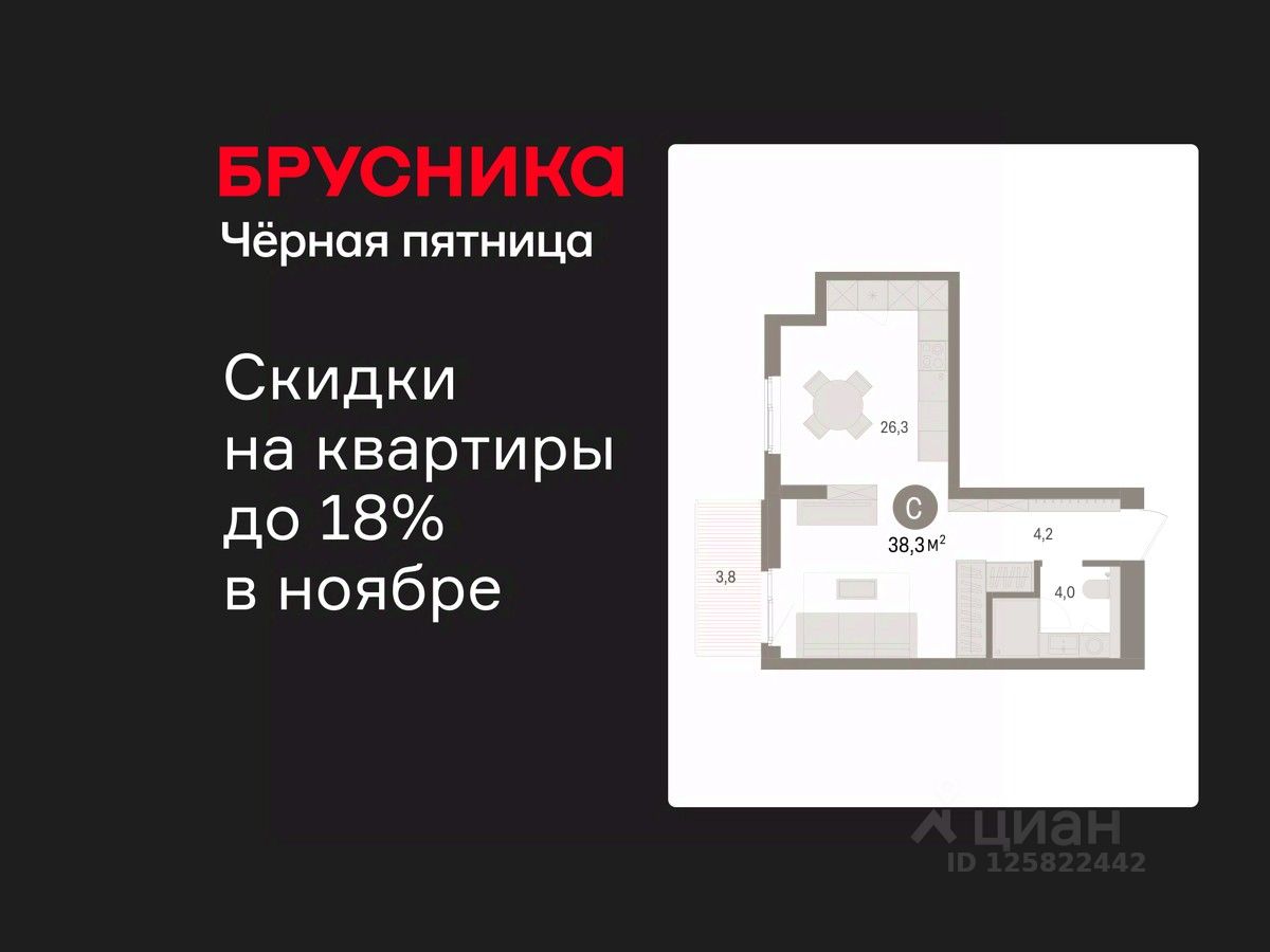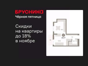 1-комн. квартира-студия от застройщика с предчистовой отделкой в ЖК "Брусника в Новоселье" на 7 этаже. Общая площадь: 38.32 кв.м., площадь гостиной 30 кв.м., из которых 5 кв.м. выделено под кухонную зону. Все окна выходят на одну сторону. В квартире один балкон, один совмещенный санузел. Высота потолков 2.7 м.