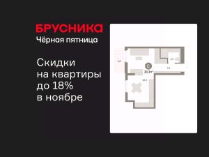 1-комн. квартира-студия с предчистовой отделкой в ЖК "Брусника в Новоселье" на 6 этаже. Общая площадь: 38.32 кв.м., площадь гостиной 30 кв.м., из которых 5 кв.м. выделено под кухонную зону. Все окна выходят на одну сторону. В квартире один балкон, один совмещенный санузел. Высота потолков 2.7 м.