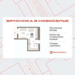 1-комн. квартира-студия от застройщика с предчистовой отделкой в ЖК "Брусника в Новоселье" на 7 этаже. Общая площадь: 31.82 кв.м., площадь гостиной 17.9 кв.м., из которых 5 кв.м. выделено под кухонную зону. Все окна выходят на одну сторону. В квартире один балкон, один совмещенный санузел. Высота потолков 2.7 м.