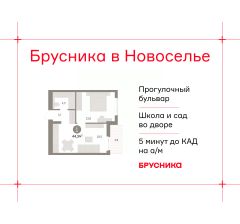 1-комн. квартира от застройщика с предчистовой отделкой в ЖК "Брусника в Новоселье" на 8 этаже. Общая площадь: 44.34 кв.м., жилая: 13.8 кв.м., площадь просторной кухни-столовой: 18.5 кв.м. Все окна выходят на одну сторону. В квартире одна лоджия, один совмещенный санузел. Высота потолков 2.7 м.
