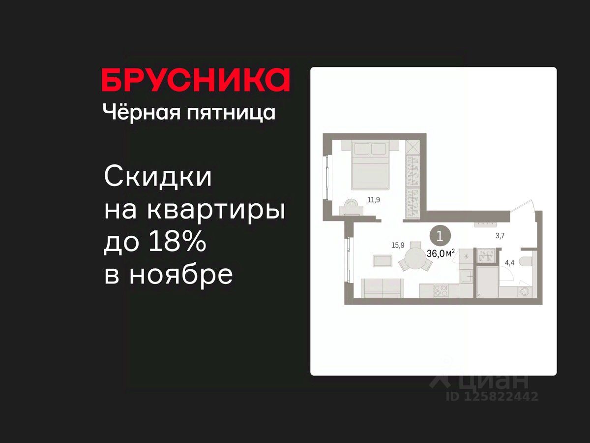 Однокомнатная квартира от застройщика с предчистовой отделкой в ЖК "Брусника в Новоселье" на 3 этаже. Общая площадь: 35.96 кв.м., жилая: 11.9 кв.м., площадь просторной кухни-столовой: 15.9 кв.м. Все окна выходят на одну сторону. В квартире один совмещенный санузел. Высота потолков 2.7 м.