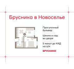 Просторная 1-комн. квартира с предчистовой отделкой в ЖК "Брусника в Новоселье" на 2 этаже. Общая площадь: 40.49 кв.м., жилая: 13.8 кв.м., площадь просторной кухни-столовой: 18.5 кв.м. Все окна выходят на одну сторону. В квартире один совмещенный санузел. Высота потолков 2.7 м.