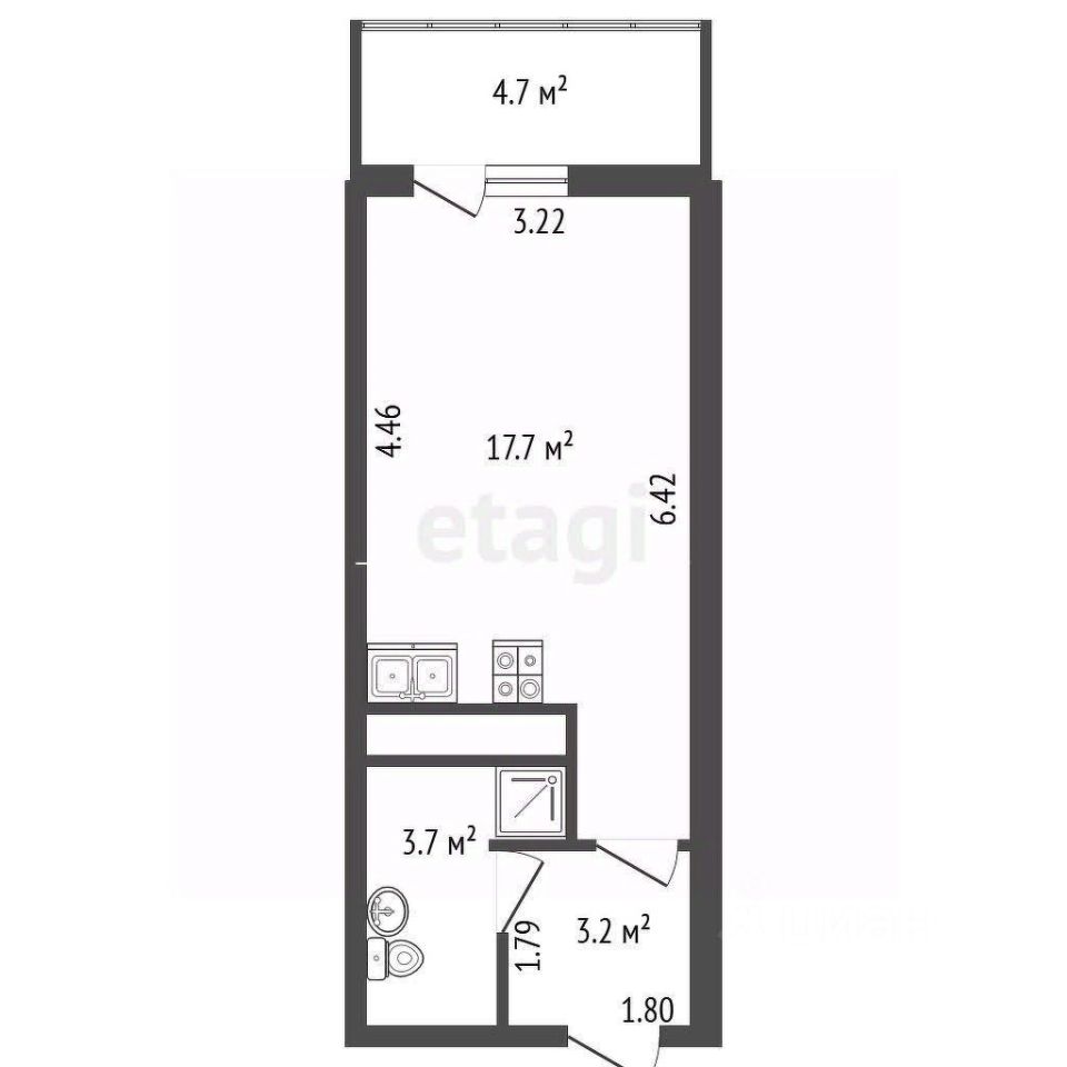24,6 м² общей площади (17,7 м² жилая) оптимальный вариант для одного человека или пары