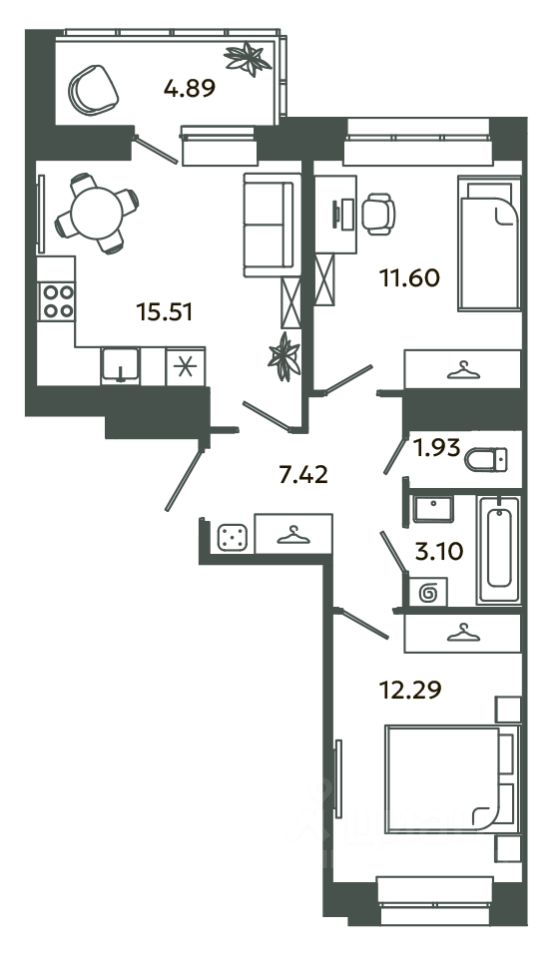Удобная планировка "распашонка" - оптимальное зонирование пространства Возможность создать индивидуальный дизайн интерьера.
