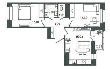 Общая площадь54,59 м²