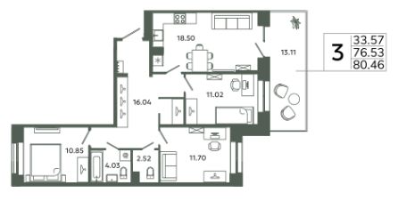 Предлагаем 4е-комнатную квартиру площадью 80,47 м² на 1 этаже.