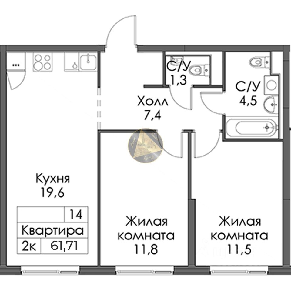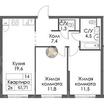 - Общая площадь квартиры 61.71 м2