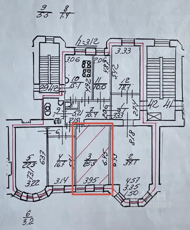Квартира расположена на 5 этаже, состоит из 5 комнат, жилой площадью 116,9 м², общей площадью 171,6 м², высота потолков 3,12 м.