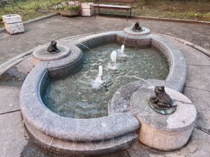 -открытое футбольное поле, тренажёры, детские качели и горки, фонтан, лавочки, набережная реки Ждановки;