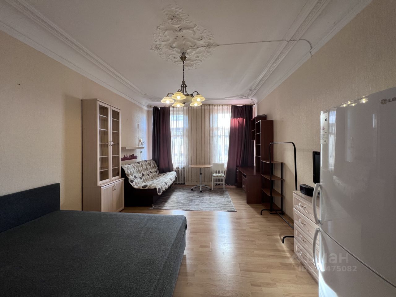 Комната правильной прямоугольной формы. Расположена в центре квартиры, напротив кухни. Два больших окна выходят на спокойную улицу, на солнечную сторону. Сделан косметический ремонт, много розеток.