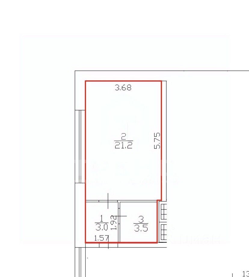 * 1 Комнаты (21.2 м²);