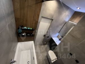 Санузел отделан крупноформатный керамогранитом бетон_ дерево; инсталляция скрытого монтажа; тропический душ; ванна 170 см.