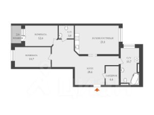 * Комнаты: 2 спальни + просторная кухня-гостиная, есть гардеробная
