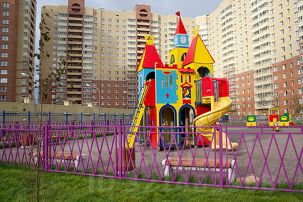 Для жителей дома во дворе обустроены детская и спортивная площадки, создавая идеальные условия для активного отдыха и развлечений на свежем воздухе.