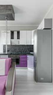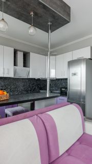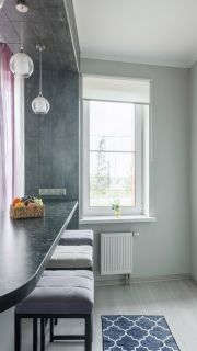 - В просторной кухне-гостиной 18,7 м2 с тремя окнами будет удобно не только готовить еду, но и принимать гостей.