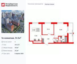Уникальная, функциональная европланировка, большая кухня-гостиная 17.26 м², просторная прихожая 7.86 м². Общая площадь квартиры - 54.5 м², жилая 24.2 м², высота потолка 2.77 м.