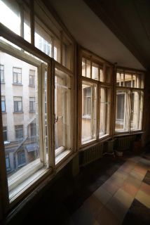 Прелесть квартиры, что она легко делится на две полноценные квартиры: около 130 кв.м -фасадная часть и около 65 кв.м дворовая. Стояки расположены в разных концах квартиры. Именно по такому принципу разделена квартира на 4 этаже. Ремонт требуется. Последняя, расселённая, коммунальная квартира в парадной.