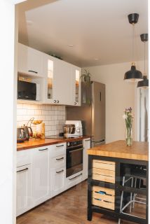 Качественный ремонт : ламинат 32 класса износостойкости по всему периметру, сантехника от брендов AM PM и Grohe, кухня с техникой BOSCH (индукционная плита, посудомоечная машина), духовая печь Electrolux, бойлер Ariston, холодильник LG.