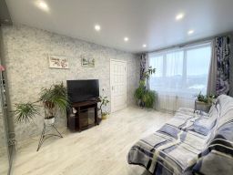 Комнаты 11+ 17+10 м, есть застеклённый балкон, во всей квартире установлены стеклопакеты и сделан ремонт.