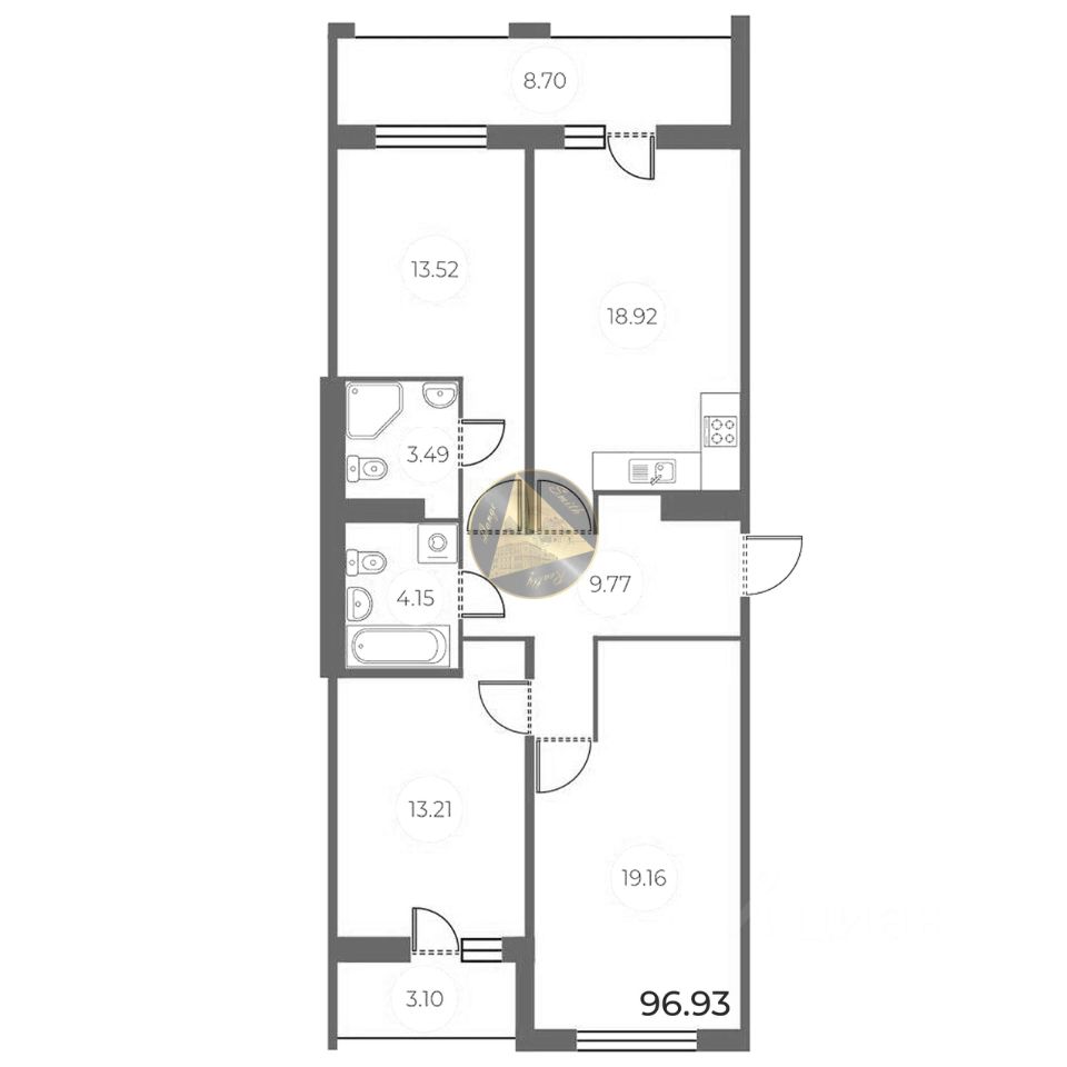 Срочно продаётся 4Е-квартира с тремя спальнями общей площадью 96,93 м2. в Выборгском районе Санкт-Петербурга. Квартира расположена в малоэтажном комплексе