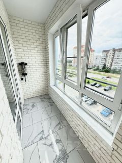 - Лоджия облицована плиткой, оснащена освещением и розетками