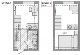 Студия имеет 2 уровня - дополнительное спальное место наверху позволяет максимально использовать полезную площадь. Удобство для жизни и дополнительный доход для сдачи в аренду.