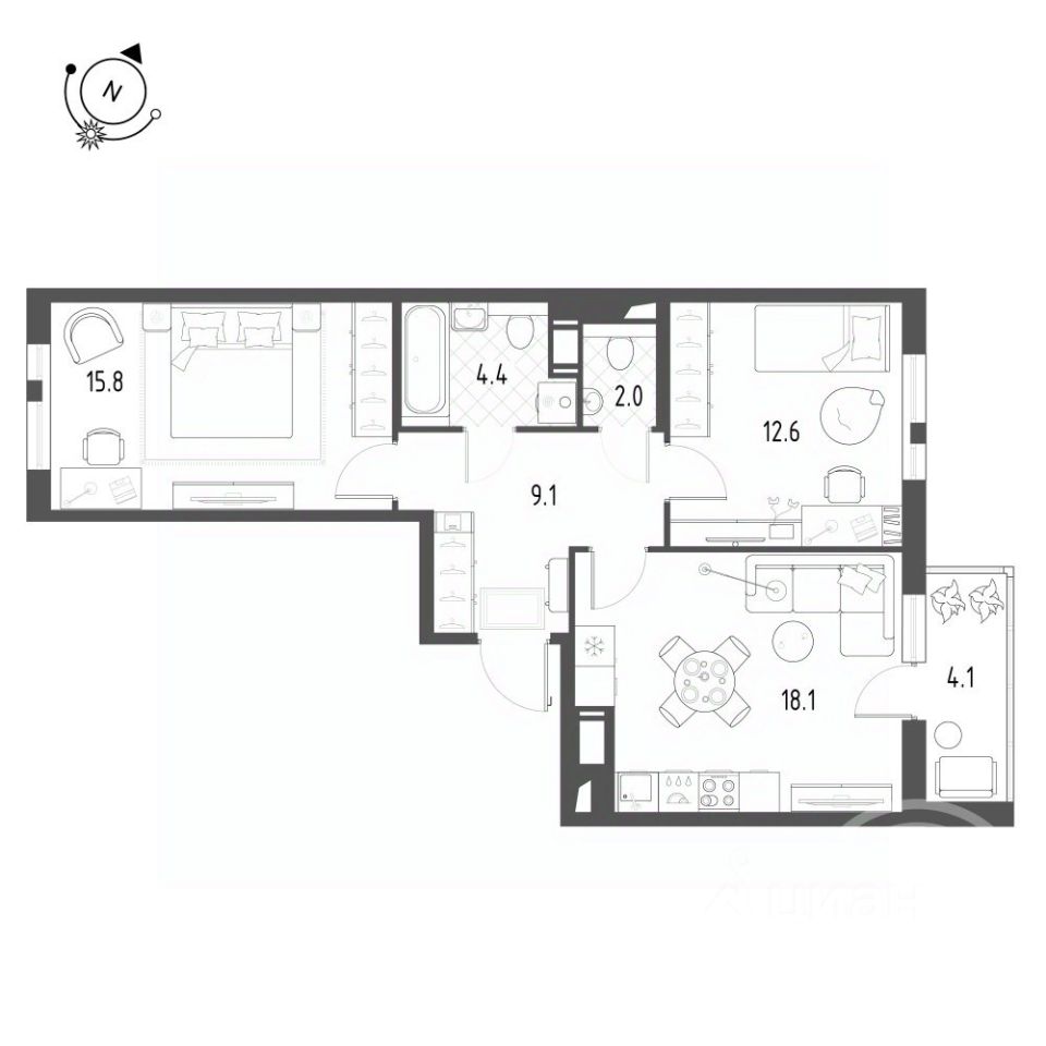 Квартира без отделки, что дает возможность реализовать свои дизайнерские фантазии и создать интерьер на свой вкус.