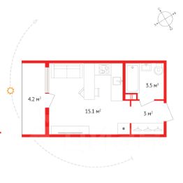 Студия 20,6 м² в новом доме, 11 этаж, ЖК Удача