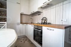 Квартира с ремонтом, поэтому это будет отличный вариант для тех, кому нужно сразу заехать и жить. Практически всё, что видите на фото - остаётся. Кухня сделана под заказ, фасады из акрилового пластика, укомплектована встроенной техникой : посудомоечной машиной, стиральной машиной, холодильником, вытяжкой, электрической духовкой и газовой варочной панелью. Практически вся мебель, что на фото также остаётся. Квартира тёплая, но в тоже время легко проветриваемая(окна выходят на обе стороны).