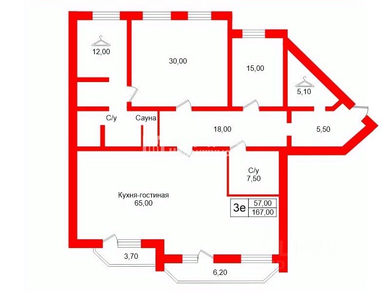 Видовая ТРЕХКОМНАТНАЯ квартира 160м2.