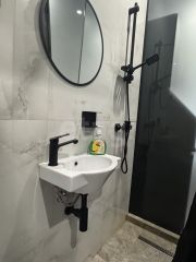 Техника: ТВ, плита индукционная, микроволновая печь, стиральная машина, холодильник, бойлер, фен, светильники.