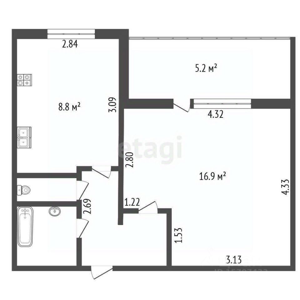 * Общая площадь: 34,9 кв.м