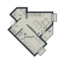 Продаётся 1-комнатная квартира в строящемся доме (Корпус 1), срок сдачи: III-кв. 2026, общей площадью 42 кв.м., на 8 этаже. Новый жилой комплекс "Эдельвейс. Янино" от застройщика "ГК Эдельвейс" расположен по адресу: Россия, Ленинградская область, Всеволожский район, Заневское городское поселение, пос. Янино-1, Шоссейная улица