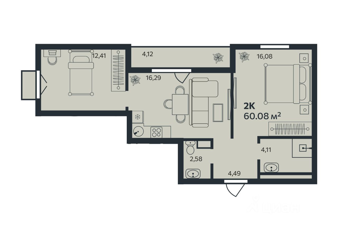 Продаётся 2-комнатная квартира в строящемся доме (Корпус 1), срок сдачи: III-кв. 2026, общей площадью 60.08 кв.м., на 8 этаже. Новый жилой комплекс "Эдельвейс. Янино" от застройщика "ГК Эдельвейс" расположен по адресу: Россия, Ленинградская область, Всеволожский район, Заневское городское поселение, пос. Янино-1, Шоссейная улица
