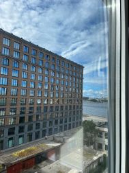 Квартира расположена на 6 этаже 12ти этажного дома. Вид во двор, также имеет прекрасный боковой вид на р. Малую Невку и Газпром-Арену. Дом с подземной парковкой, придомовая территория благоустроена, замечательная детская площадка, закрытый двор даёт гарантию безопасности. Жизнь с комфортом.